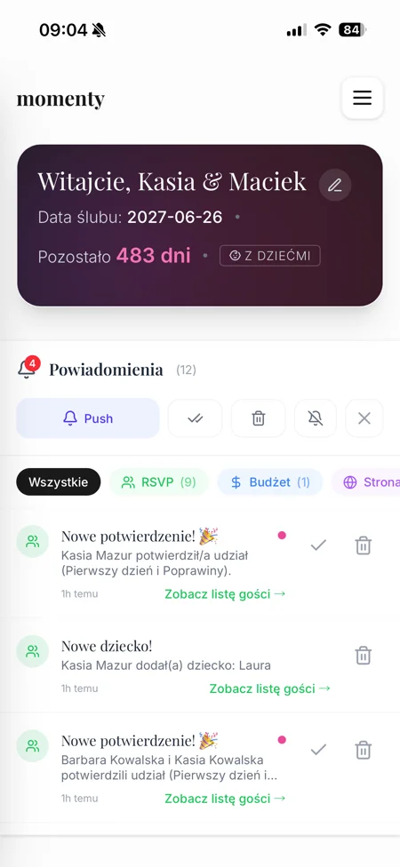 Nie przegapicie żadnego RSVP i zaplanujecie Wasz wyjątkowy dzień kiedy tylko chcecie.