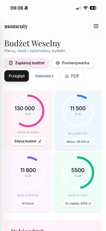 Zobacz funkcjęZaawansowany moduł finansowy: od planowania po rozliczenie każdego wydatku weselnego.
